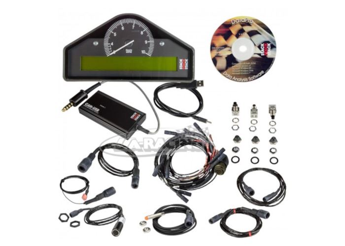 Das ST8910 Multifunktions-Display wird als Komplettsystem geliefert, bestehend aus Displaymodul, Kabelbaum, Bedienschalter (3), IR-Rundenzeitempfänger, Raddrehzahlsensor, Software und USB-PC-Interface.